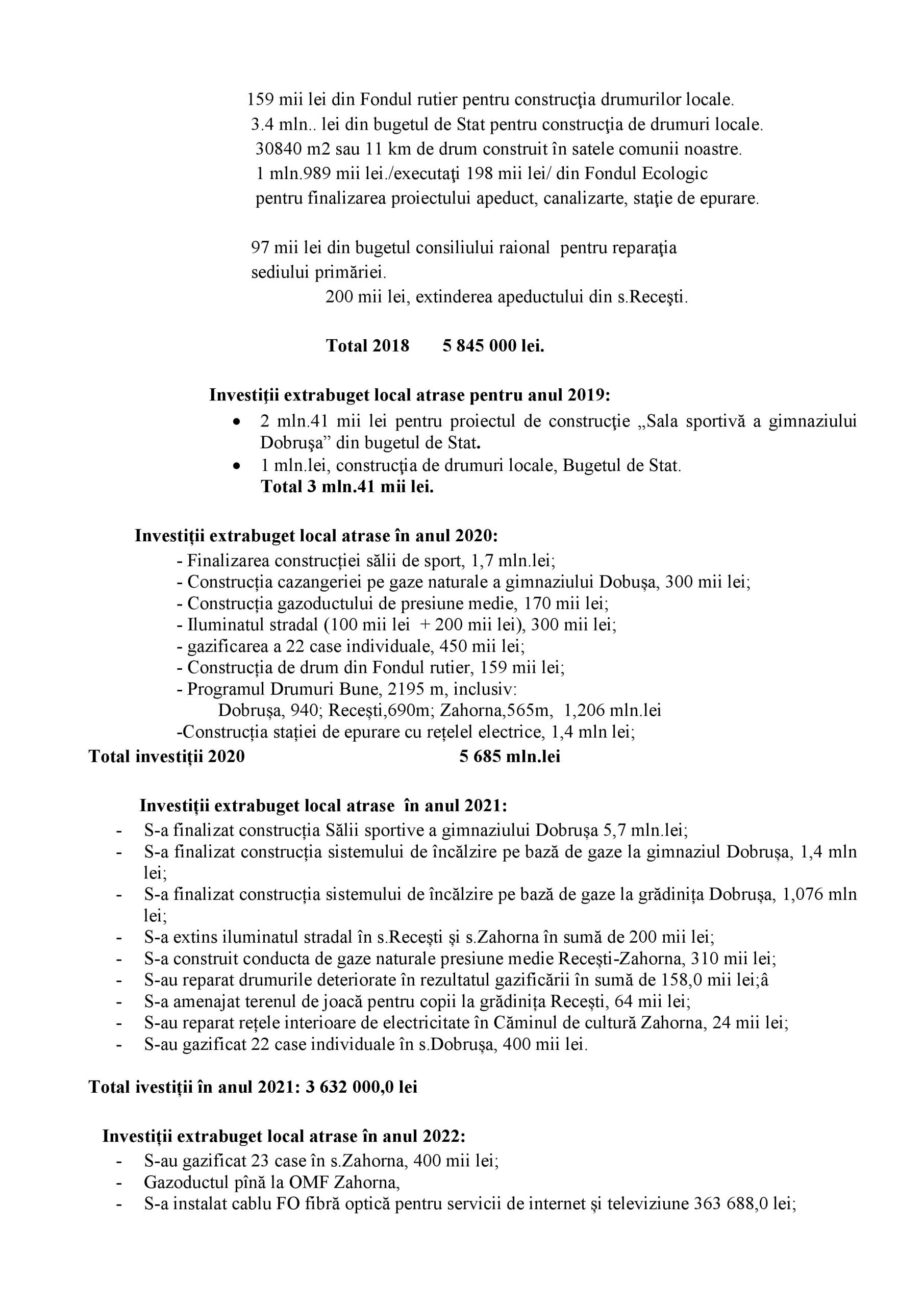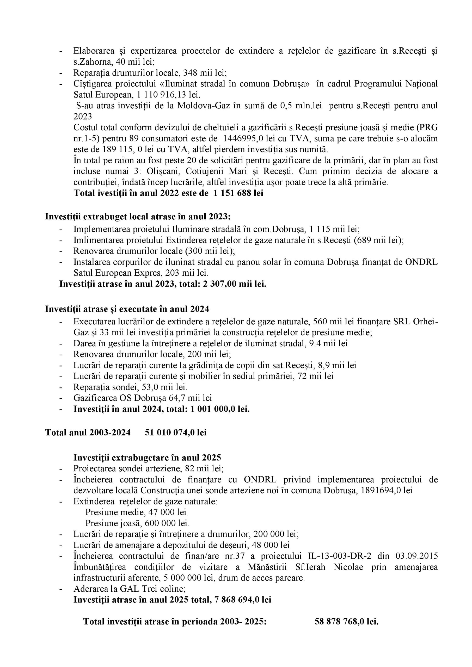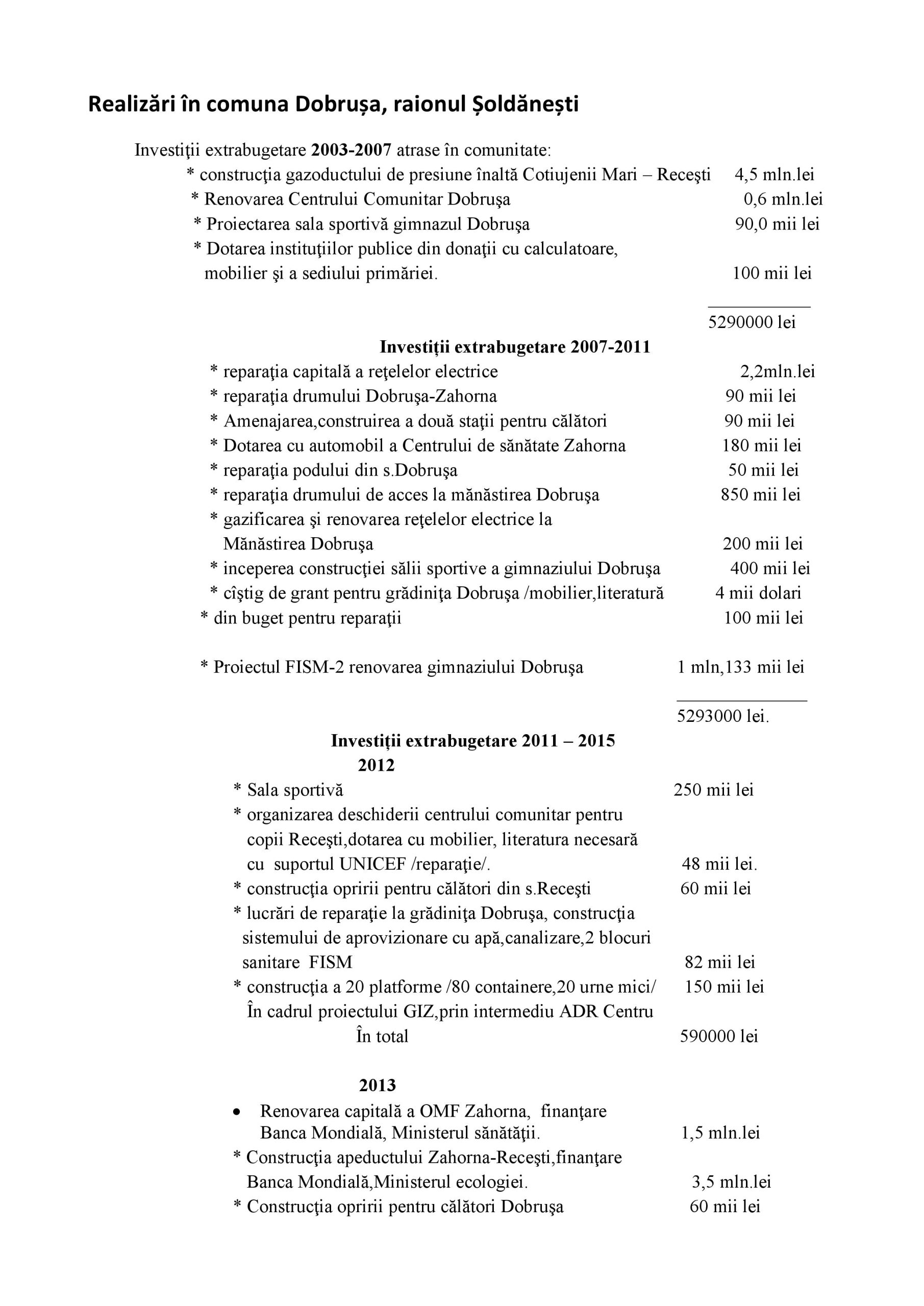 Realizări și investiții